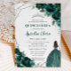 Invitation Quinceañera Emerald Green Floral Silver Princess