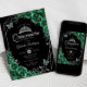 Quinceanera Floral Emerald Green Silver Black Invitation