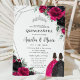 Quinceañera Fuchsia Black Floral Twins Silver Invitation