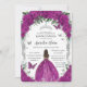 Quinceanera Fuchsia Floral Vintage Silver Brown Invitation