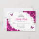 Fuchsia pink silver and white floral Quinceanera RSVP reply card. Features, script font, silver butterflies, watercolor roses and tiara. Perfect for an elegant princess style glam celebration. Personalize with your own details.