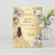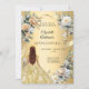 A faux gold looking background. Decorated with white and yellow florals and a golden ribbon. A girl wearing a tiara and a dress. Personalize and add a name and details.