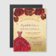 Quinceanera gold red dress invitation magnet