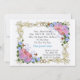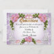 Quinceanera party formal invitation for Mis Quince Anos 15th birthday party with pink hearts orchids and ribbons on lavender floral background.