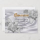 Quinceanera party elegant formal invitation for Mis Quince Anos 15th birthday party with white roses and lilies on soft satin-look swirl background, Text is fully customizable, add your own information for a personal custom invitation