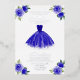 Elégante robe bleue royale, invitations florales à la fête du 15e anniversaire.