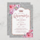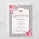 Quinceanera Modern Floral Silver Glitter Birthday Invitation
