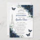 Quinceañera Navy Floral Paris Eiffel Butterflies Invitation