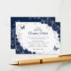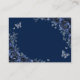 Navy silver and white floral Quinceanera reception details enclosure cards. Features, script font, silver butterflies, watercolor roses and tiara. Perfect for an elegant princess style glam celebration. Personalize with your own details.