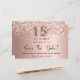 Une petite fille et tendance Enregistrer la carte Date pour une Quinceañera, 15e anniversaire fête. arrière - plan d'or rose décoré de confettis. Personnalisez et ajoutez une date et un nom/texte. Le texte : Save the Date est écrit avec un grand script de style à la main tendance avec des swashes. Numéro 15 avec une police de style ballon.