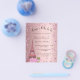 A modern, stylish and glamourous invitation for a Quinceañera, 15th birthday party, parisian theme. A blush pink metallic looking background with pink sparkling hearts and the Eiffel tower with some flowers. The name is written with a modern hand lettered style script. Personalize and add your party details.
