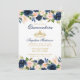 Watercolor Pink Blush Blue Floral and Gold Quinceanera Invitation Card