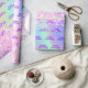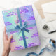 Elegant, girly, glamourous style party gift wrapping paper for a Quinceañera, 15th birthday. A trendy iridescent background with unicorn and rainbow colours in pink, purple, rose gold, mint green. Decorated with blush pink faux glitter. Personalize and add a name and text. Purple coloured letters.