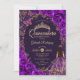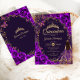 Purple and gold Quinceanera celebration invitation. Features brunette girl in ball gown dress, script font, gold butterflies, watercolor roses and tiara. Perfect for an elegant princess style glam celebration. Personalize with your own details. Printed Zazzle invitations or instant download digital printable template.