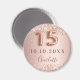 Elegant, classic, glamourous and girly Save the Date magnet for a Quinceañera, 15th birthday party. Rose gold and blush gradient background. Decorated with rose gold, faux glitter, sparkles. Personalize and add a name. The name is written with a modern dark rose coloured hand lettered style script. Number 15 is written with a balloon style font.