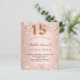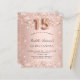 For an elegant Quinceañera, 15th birthday party. A rose gold gradient background. Decorated with rose gold faux glitter dust. Personalize and add a name and party details. The name is written with a hand lettered style script. Number 15 is written with a balloon style font.