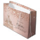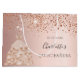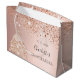 A gift bag for a girly and glamourous Quinceañera, 15th birthday. A rose gold background decorated with faux sparkles. Personalize and add a date and name. The name is written with a modern hand lettered style script