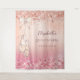 A tapestry for a girly and glamourous Quinceañera party. A rose gold and pink gradient background. Decorated with rose gold, pink faux glitter dust and ballerina pointe shoes. Personalize and add a name, age, date. The name is written in dark rose gold with a modern hand lettered style script.