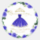 Quinceanera Royal Blue Gown Floral Classic Round Sticker