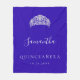 A golden princess crown, tiara on trendy royal blue background. Personalize and add a name, and a date. The name is written with a modern hand lettered style script.