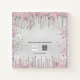 Modern, stylish and glamourous for a girl's Quinceañera 15th birthday party. A faux silver looking background, decorated with pink and faux silver glitter dust. Personalize and a name and a date. Number 15 is written with a balloon style font, script.