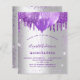 A stylish faux silver looking background. Decorated with purple faux glitter and balloons. Personalize and add a name and party details. The name is written with a hand lettered style script