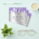 A faux silver looking background decorated with violet, lavender colored faux glitter and balloons. Personalize and add a date and name/age. The text: Save the Date is written with a large trendy hand lettered style script.