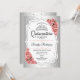 Features script font, blush pink roses, tiara and confetti. Classy peachy pink design with faux glitter silver. Perfect for an elegant glam celebration.