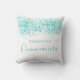 A pillow for a Quinceañera, 15th years old girls room. A chic white background with teal, sea green faux glitter drops, spots. The text: Quinceañera is written in teal with a large modern hand lettered style script. Personalize and add a name.