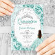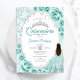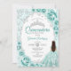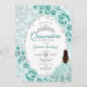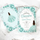 Turquoise silver Quinceanera celebration invitation. Features brunette girl in ball gown dress, script font, silver butterflies, watercolor roses and tiara. Perfect for an elegant princess style glam celebration. Personalize with your own details. Printed Zazzle invitations or instant download digital printable template.