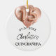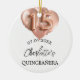 An ornament for a girly and glamourous Quinceanera, 15th birthday . A white background with rose gold balloons. Personalize and add a date, and name.