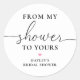 These from my shower to yours soap and bath salts favour sticker feature a modern minimalist design. The script heading is an image that cannot be edited. All of the other text is fully editable. For more advanced customization of this design, simply select the "Customize It" button above.