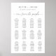 This seating chart poster features a modern minimalist design and 12 tables layout. The script text heading is an image that cannot be edited. The heading image can be resized to fit any poster size. All of the other text is fully editable. For more advanced customization of this design, simply select the "Customize It" button above.