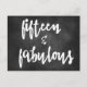 NewParkLane - Carte postale, avec une citation amusante "Fifteen & Fabulous" dans une typographie de script branchée, contre un arrière - plan de tableau noir. La carte moderne parfaite pour toute fille de quinze ans ! Vous pouvez modifier la couleur de l'arrière - plan si vous le préférez. Vous voulez ce design sur un autre produit? Ou avec un âge écrit différent, personnalisé, ou dans une autre couleur de police ? N'hésitez pas à me contacter, je le ferai gratuitement pour vous !