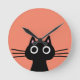 Quirky Black Kitty Cat with Long Whiskers Round Clock