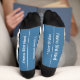 Bluejay Bird socks with a pattern of adorable birdie caricatures, solid bottoms with the text, I'mma Bird Nerd and I love Birdies, both lines can be changed to your own text - a white band on top with coordinating colours and the BirdyBirdy™ Logo on top. Without a doubt, the perfect bird lovers gift for the bird watcher who has everything.. well - Almost everything..