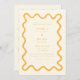Simple and whimsical wedding invitation featuring hand drawn quirky line as a frame. You can add a photo on the back with the same wavy line. Yellow colour.