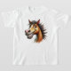 The illustration features a cartoon-style horse with a friendly and quirky expression. It has highly exaggerated and expressive features: large, round eyes with prominent pupils, a big, broad smile revealing its teeth, and a playful, slightly tousled mane. The watercolor technique adds a vibrant, lively feel to the artwork, with subtle splashes of colour that highlight the horse's joyful demeanour. The ears are perked up, suggesting alertness and curiosity. The overall composition emphasizes a whimsical, humourous character.