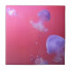 Artistic photograph of purple jellyfish floating in luminous pink water.