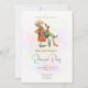 A fun, quirky lady's retirement party invitation. The design features bold, bright colors and a quirky lady drinking from a bottle, with the attitude "anything goes" This is a humorous card to make your guests smile.