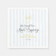 Designed with joy, each napkin features a quirky, handwritten font that embodies the playfulness and joy of the occasion. At the heart of the design is a hand-drawn lemon with a bow, symbolizing the zest and brightness the future holds for the couple. This citrus motif, combined with the soft blue watercolor stripes in the background, creates a harmonious and modern mediterranean style of whimsy and sophistication.