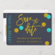 Black-Flame, gold and turquoise confetti VIP Entry Save the Date card with cursive handwriting script customizable to your event specifics.
