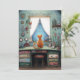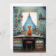 Quirky orange cat at a window illustration style image on a flat greeting card. Text can be changed to your preferred greeting. AI assisted graphic purchased with commercial use. Artwork: RedHeronLighthouse
