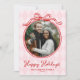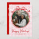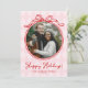 Quirky Pink & Red Whimsical Bow Happy Holidays Holiday Card