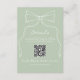 Personalized Hand Drawn Bow Green Wedding RSVP QR Code Enclosure Card is the perfect match for your wedding invitations. It complements wedding invitation ideas with a blend of modern and timeless style, designed to coordinate with any wedding invitation, wedding invitation cards, and wedding invitation wording. Ideal for wedding invitation templates, this design fits simple wedding invitations, hand drawn wedding invitations, quirky wedding invitations, and works beautifully for an italian wedding, sage green wedding, green wedding theme, or white and green wedding.