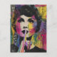A woman puts her finger to her lips to indicate be quite to someone is the style of a colourful mixed media collage