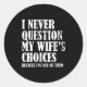 Quote I Never Question My Wife's Choices Husband Classic Round Sticker