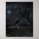 Perfect for Halloween decorating, this gothic-inspired artwork by Jayne Wilson features a raven on a fence post under a full moon night sky and the quote from Edgar Allen Poe, "Quoth the raven, 'Nevermore'".
