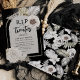 Say farewell to your carefree twenties with a R.I.P Twenties themed Birthday Party! This invitation for your 30th birthday sets the stage for a sophisticated and stylish celebration. Featuring a striking grey tombstone arch against a sleek black background, accented with a luxurious platinum gold frame and delicate white florals with a touch of shimmering foliage. The template is fully customizable for you to add your own personal event details.