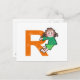 Illustration of a cute little cartoon girl climbing over a giant letter R. Image available on various gifts and products. Postcards.